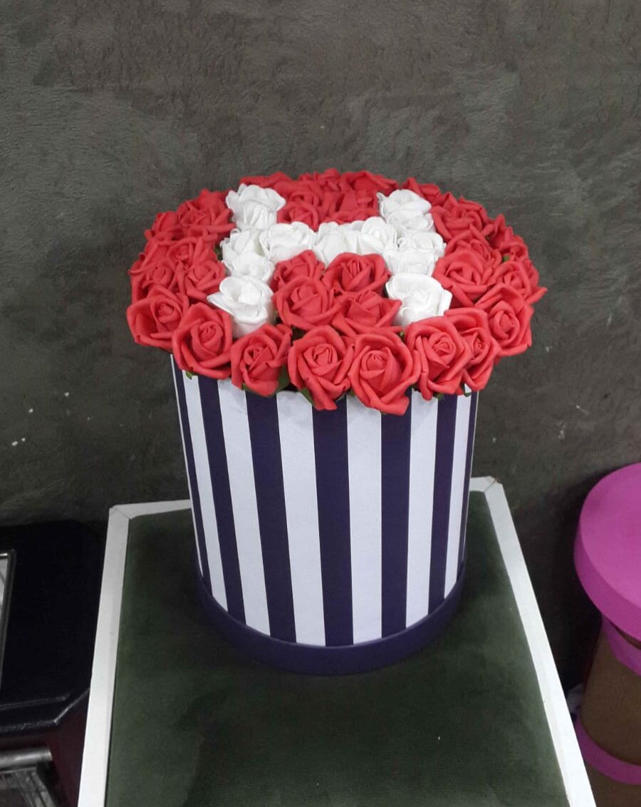 ÇİZGİLİ KUTUDA HARF GÜL ARANJMANI