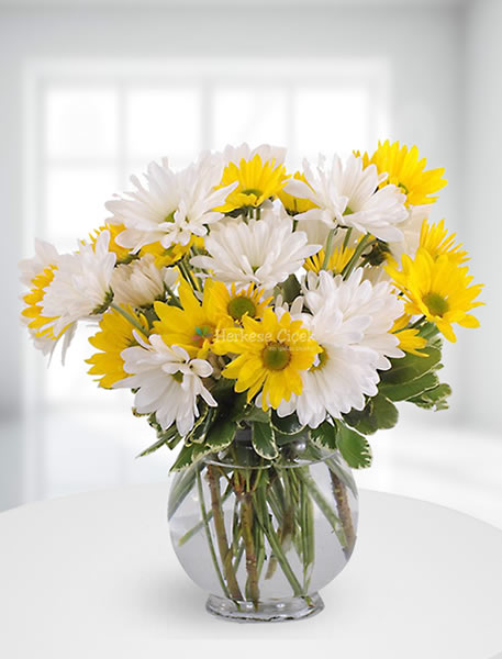 Sarı beyaz papatya arajmanı